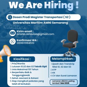 Universitas Maritim AMNI Semarang Buka Rekrutmen Dosen Prodi Magister Transportasi (S2)
